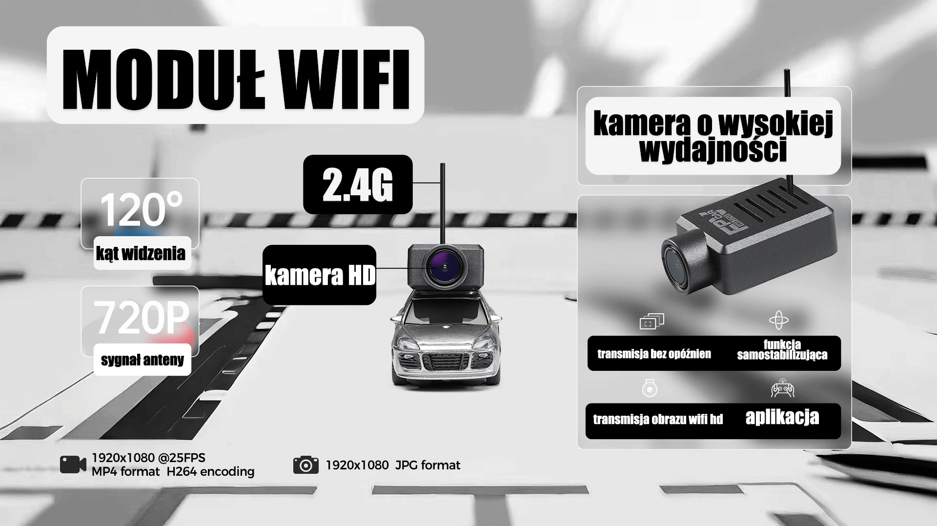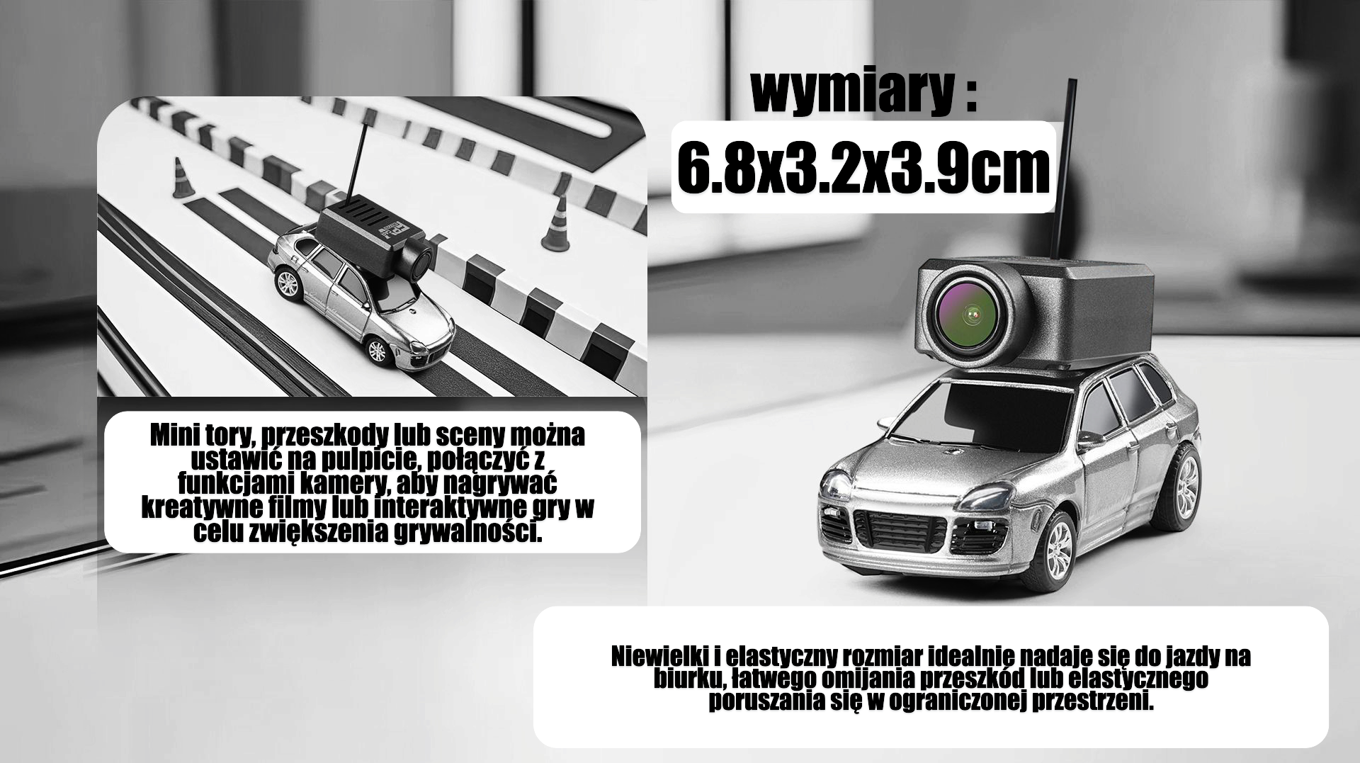 To miniaturowe auto wyścigowe z kamerą, którym sterujesz za pomocą telefonu! Wystarczy zainstalować aplikację, połączyć się przez Wi-Fi i już możesz oglądać na żywo, co widzi samochód. Dzięki funkcji FPV (First Person View) poczujesz się, jakbyś naprawdę nim jeździł. Zmieniaj prędkość, skręcaj, nagrywaj filmy lub rób zdjęcia – wszystko z poziomu ekranu!